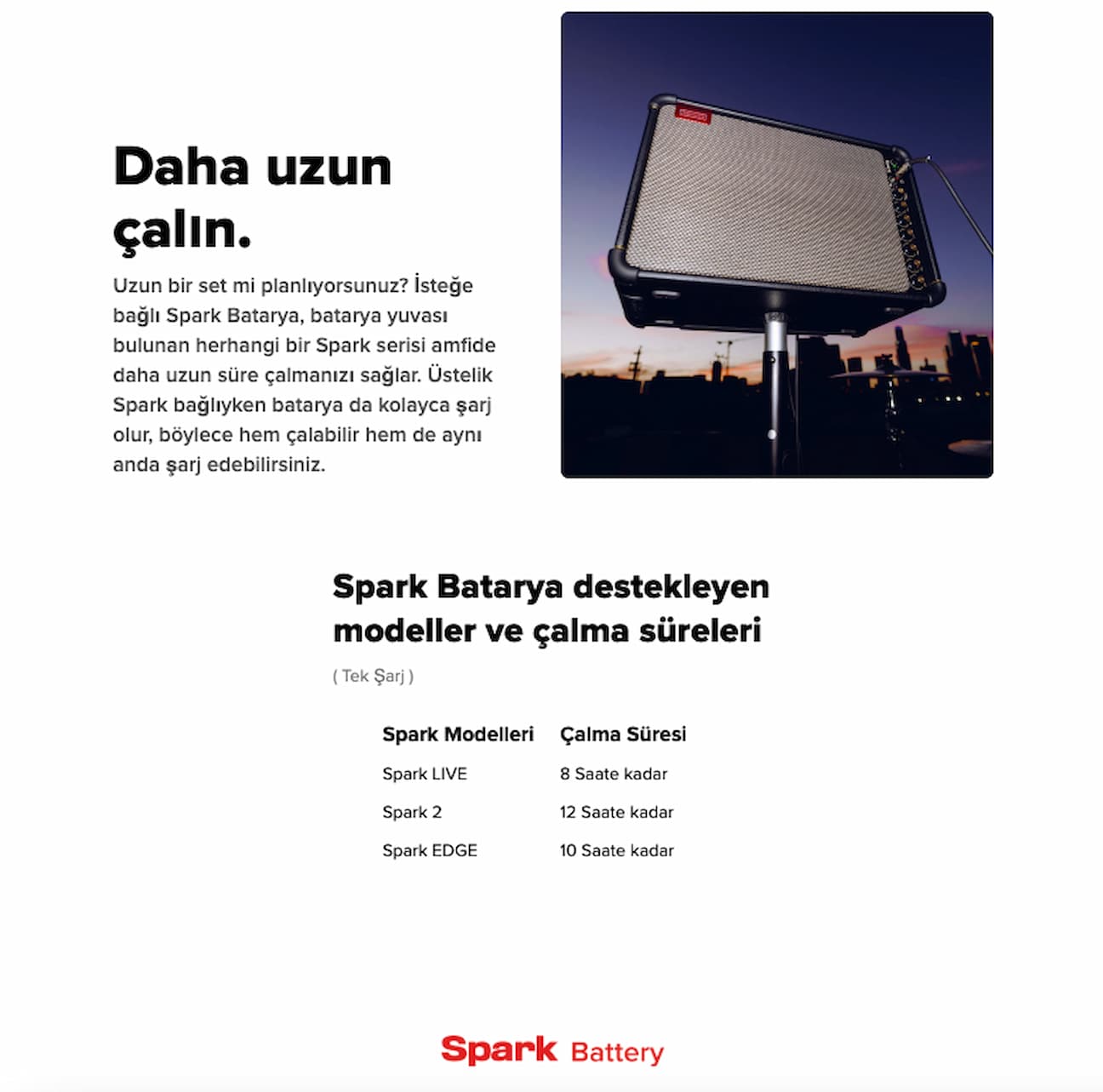 Spark Batarya, tek bir şarjla 8 - 12 saat* arasında çalma süresi sağlar. Daha fazla çalma süresine ihtiyacınız varsa saniyeler içinde kolayca değiştire bilirsiniz.