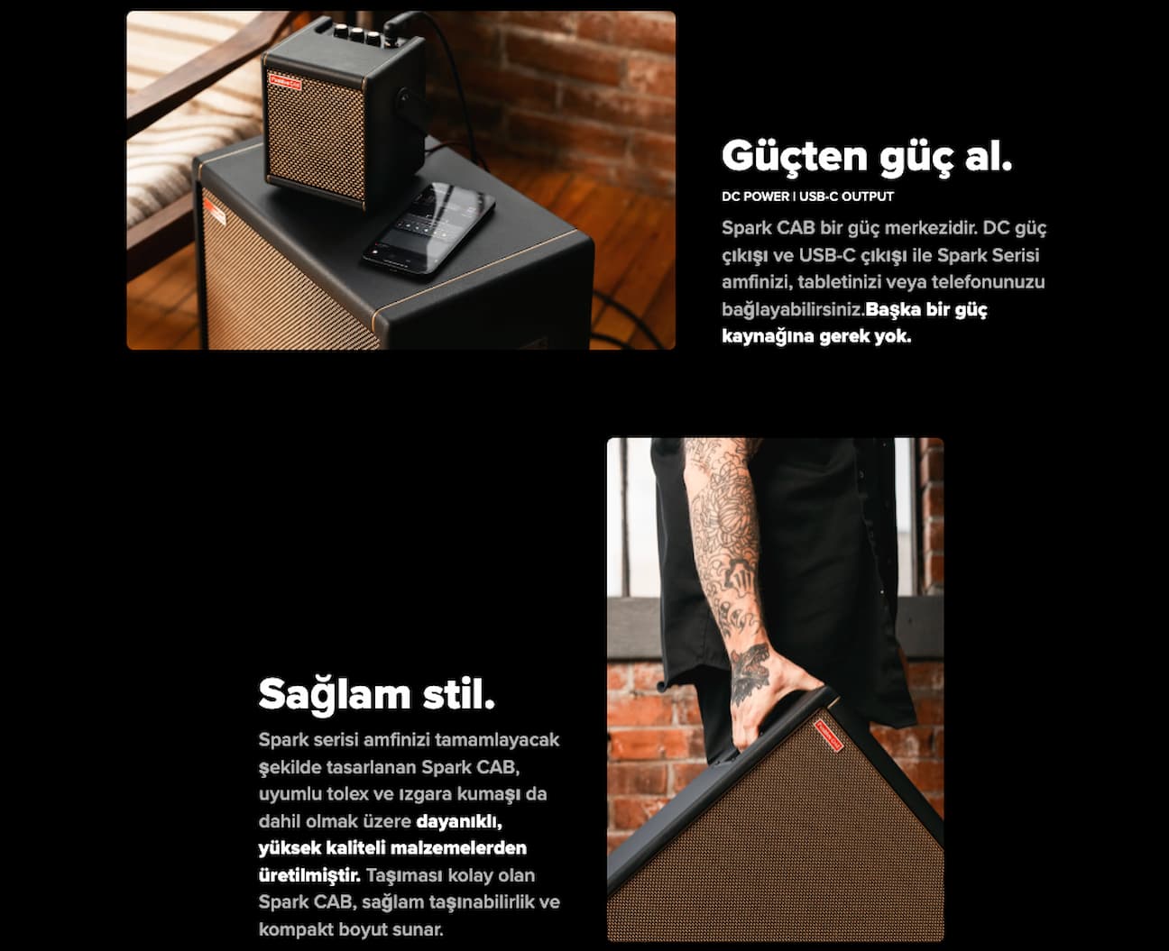 DC & USB‑C Güç Çıkışı ile Enerji Çözümü Spark CAB yalnızca hoparlör değil aynı zamanda bir güç kaynağı olarak da hizmet eder. DC güç çıkışı ve USB‑C çıkışları ile Spark serisi amfiler, tablet veya telefon gibi cihazları beslemek için kullanılabilir (adaptör gerekebilir).