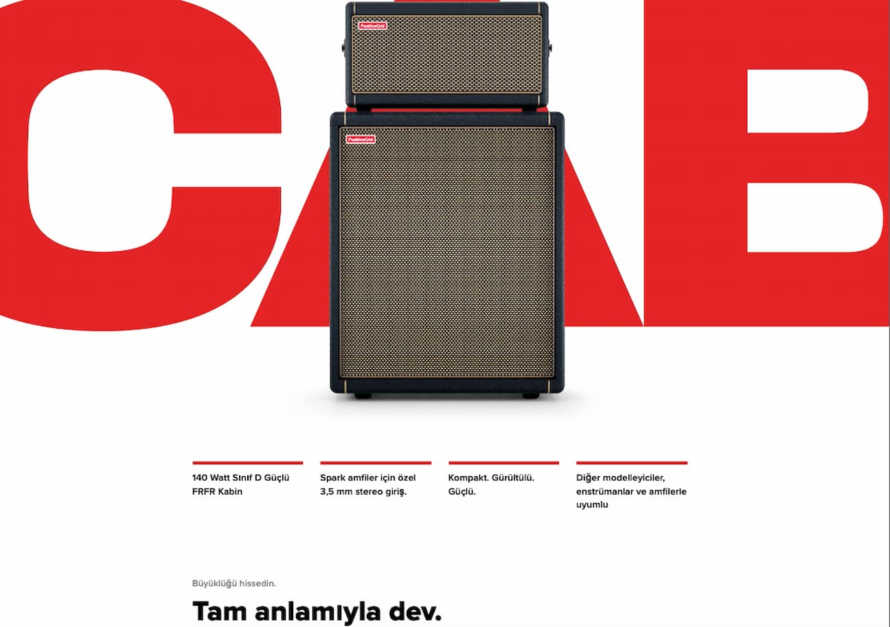 Positive Grid Spark CAB, 140 W RMS Class D amplifikatör ile güçlendirilmiş FRFR (Full Range Flat Response) hoparlör kabinidir. Spark serisi amfilerle tamamen uyumlu olacak şekilde optimize edilmiş olmakla birlikte diğer modelleyiciler, enstrümanlar ve line‑level çıkışlı cihazlarla da yüksek kaliteli ses üretmek üzere tasarlanmıştır. Canlı performanslar, kayıt oturumları ve evde çalışma için üstün ses çözünürlüğü ve güçlü çıkış sunar.