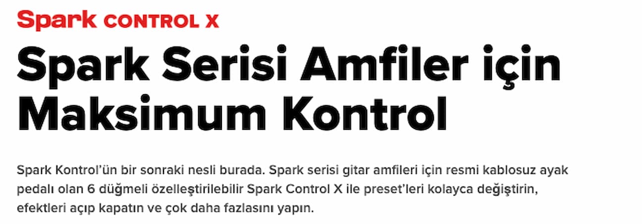 Uyumluluk ve Entegrasyon Spark Control X, Spark serisi amfilerle uygulama üzerinden tam entegrasyon sağlar. Spark LIVE kullanıcıları için uygulama gerekmeden doğrudan hardware bağlantısı da mümkündür.