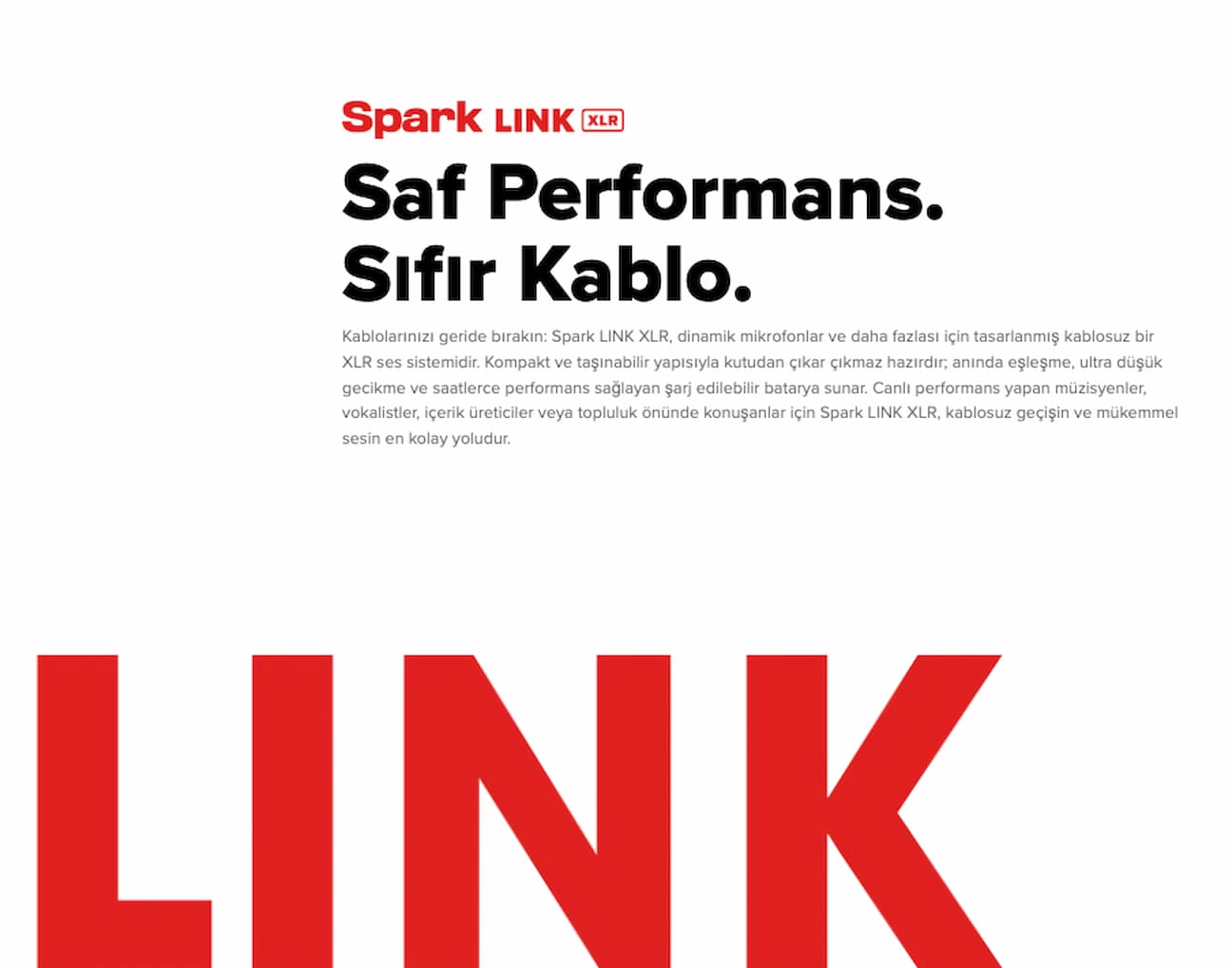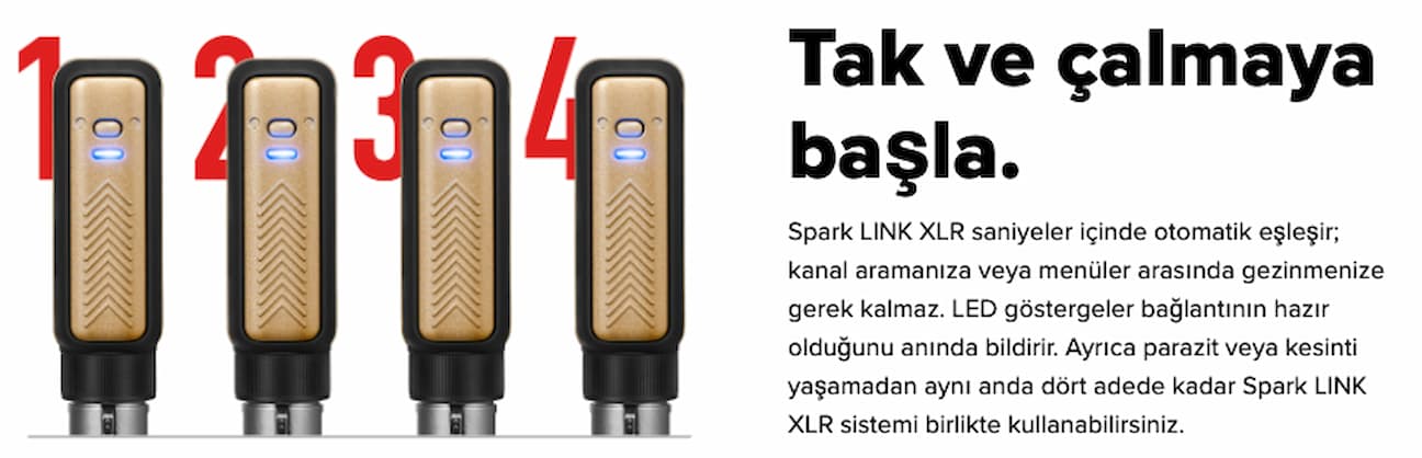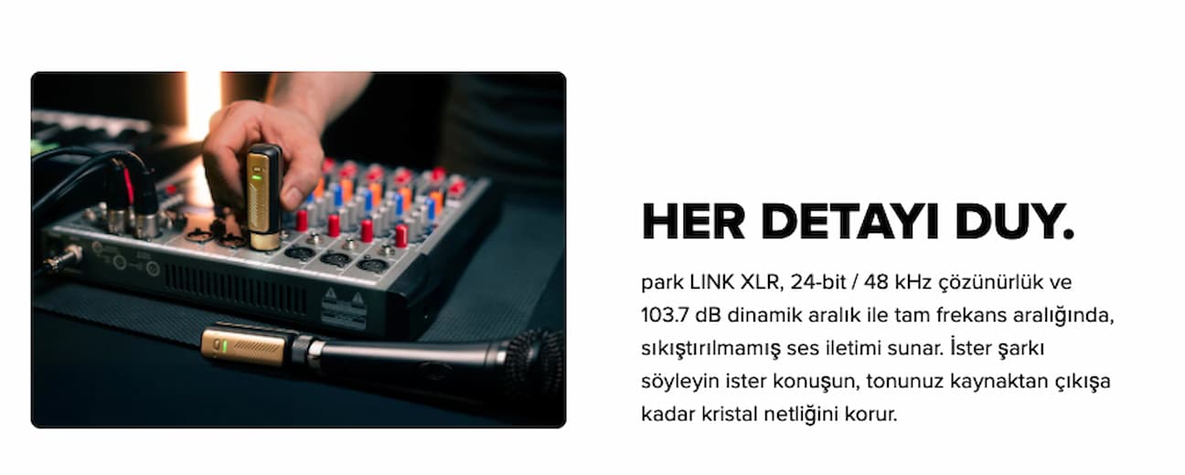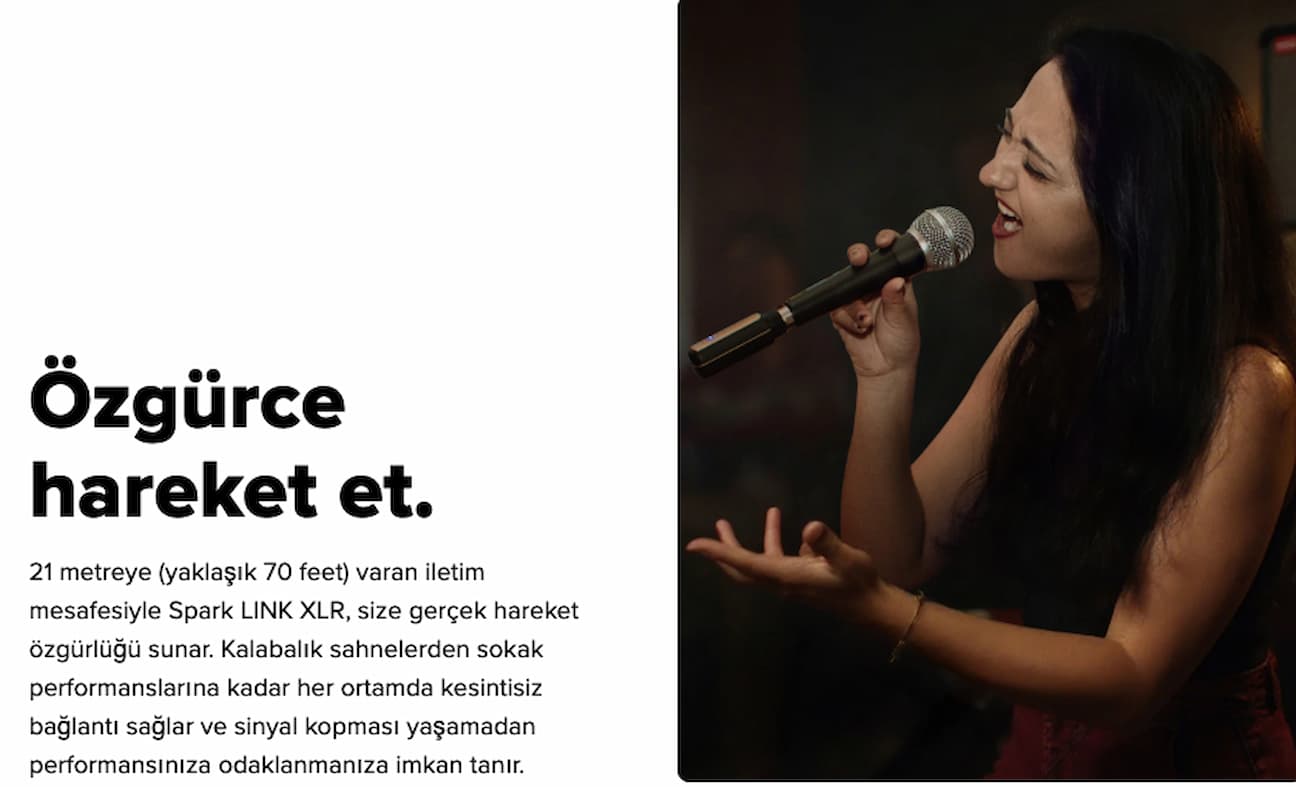 Spark LINK XLR, 2.4 GHz kablosuz bağlantı teknolojisi ile stabil ve kesintisiz bir sinyal iletimi sağlar. 24-bit / 48kHz ses çözünürlüğü ve geniş dinamik aralığı sayesinde vokal veya enstrüman sinyalinizi kayıpsız şekilde aktarır.